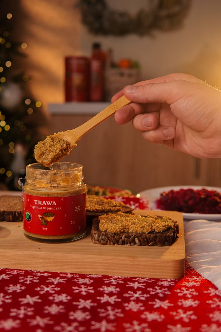 Используйте горчицу TRAWA как заправку для салатов, дополнение к горячим блюдам из овощей и мяса, для брускетт или просто ешьте её ложкой из банки — фантазируйте!