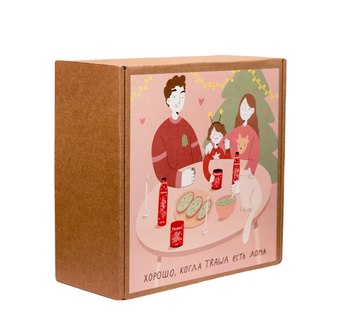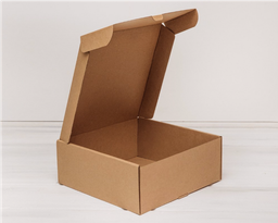 Крафтовая коробка 25 на 25 см, с наклейкой на крышке, внутри будет бумажный наполнитель