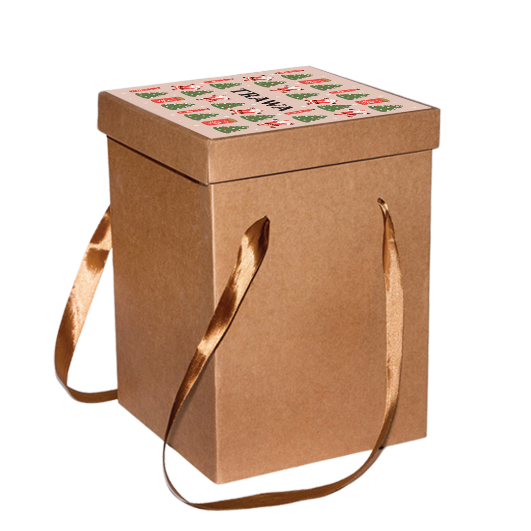 Коробка крафт с лентами Новый год (Дед Мороз)