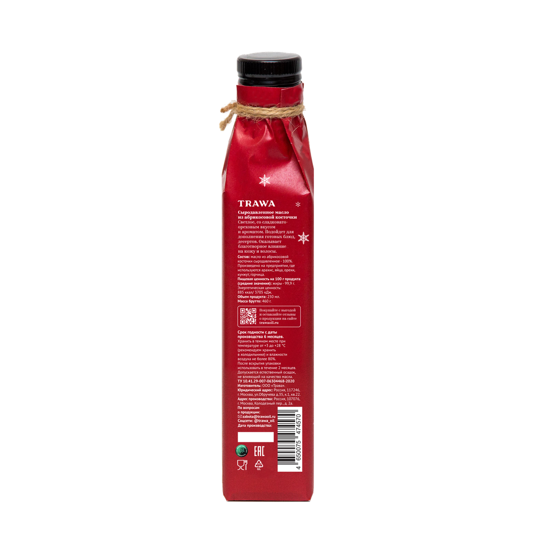 Сыродавленное абрикосовое масло TRAWA сделано в дубовой бочке самым бережным методом холодного отжима без контакта с пластиком (исключаем попадание микрочастиц пластика в готовый продукт), металлом (бережем масло от окисления). Перед отжимом сырье не подвергается термическому или химическому воздействию, что позволяет сохранять природную пользу сырья.