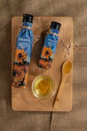 Масло ароматное подсолнечное из обжаренных семян TRAWA имеет приятный, нежно-желтый цвет. Сбалансированные аромат и вкус обжареной подсолнечной семечки переносят вас в детство: теплые, наполненные, солнечные.