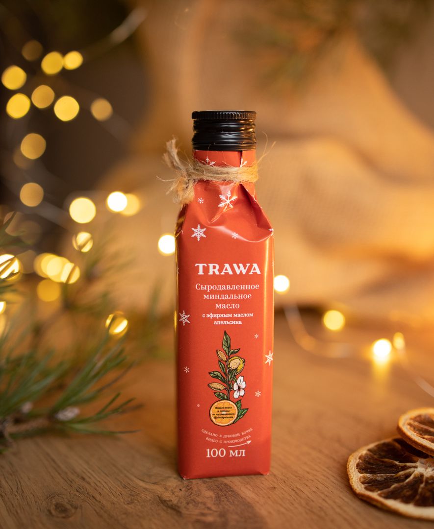 Сыродавленное миндальное масло TRAWA с эфирным маслом апельсина от нутрициолога Натальи Шульги. Вместе с @shulgarussia предлагаем добавить к сладковатому вкусу миндального масла освежающую цитрусовую нотку. Эфирное масло апельсина помогает росту оптимизма, веры в свои силы, обаяния. Открывает сердце для добра и радости, поэтому станет идеальным новогодним подарком!
