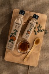 Ароматное тыквенное — масло из микса обжаренных и сырых семян 1:1. С ярким ароматом, оно украсит блюда из тыквы, крем-супы, блюда из тушеных овощей и даже ванильное мороженое!