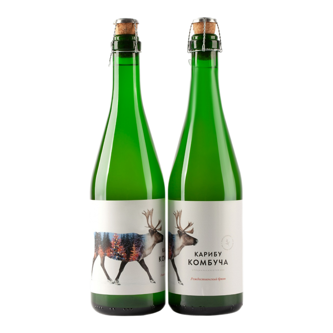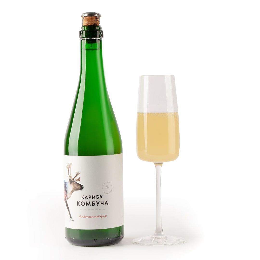 Лимитированная серии комбучи — рождественский брют. Это выдержанный напиток, разлитый в бутылки для шампанского по 0,75л, на апельсине, бадьяне и корице. Гораздо более сильно газированный, чем обычная комбуча.